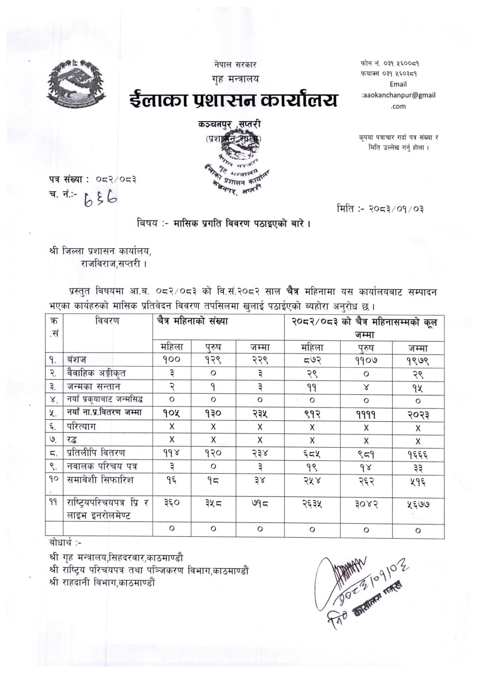 २०८२ साल फागुन महिनाकाे मासिक प्रतिवेदन सम्बन्धमा ।