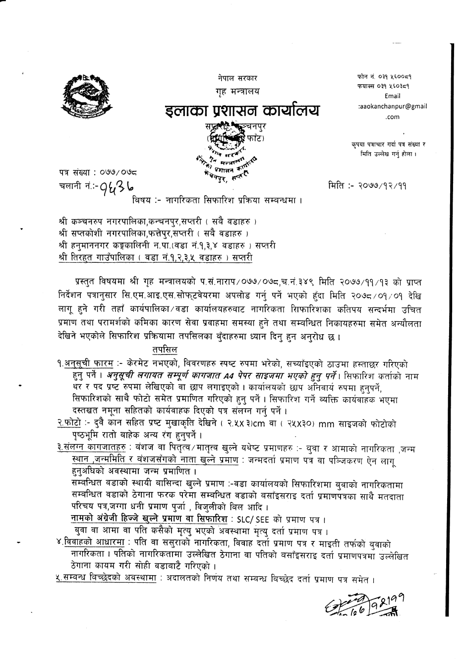 नागरिकता सिफारिश प्र...