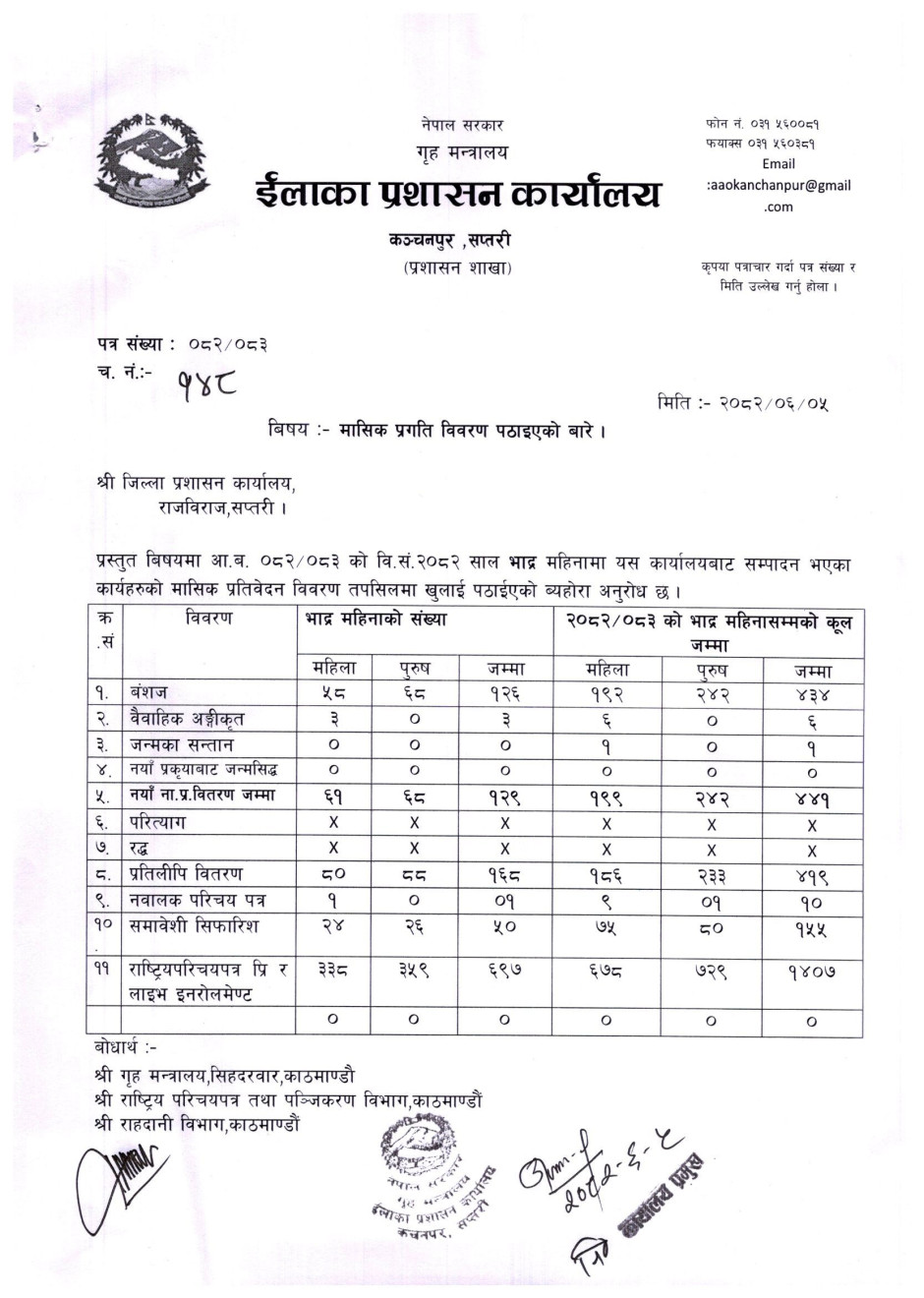 २०८२ साल भाद्र महिनाको मासिक प्रतिवेदन सम्बन्धमा ।