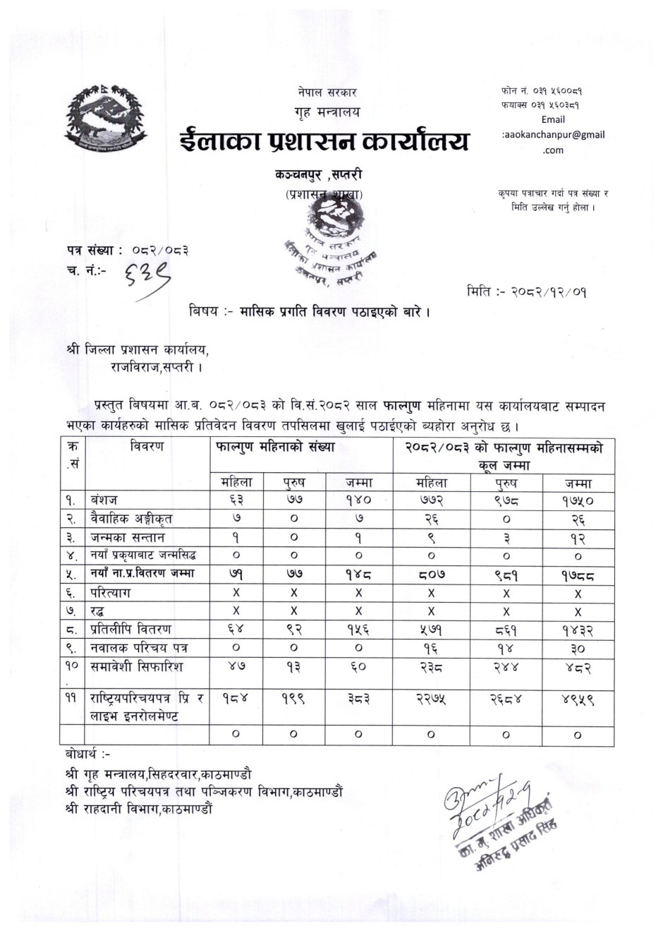 २०८२ साल फागुन महिनाकाे मासिक प्रतिवेदन सम्बन्धमा ।
