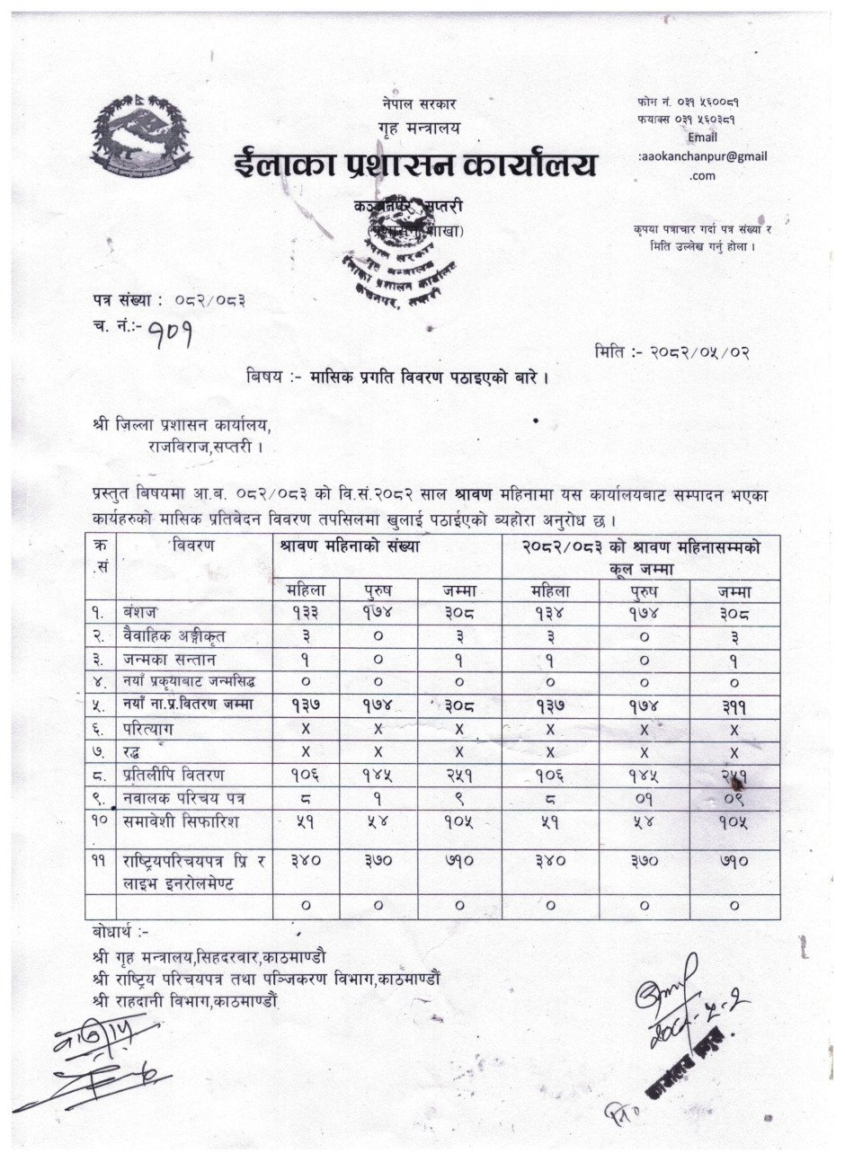 २०८२ साल श्रावण महिनाकाे मासिक प्रतिवेदन ।